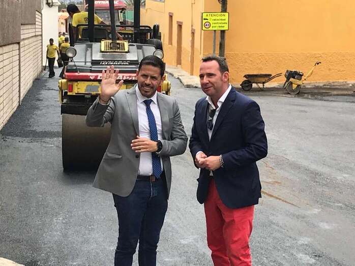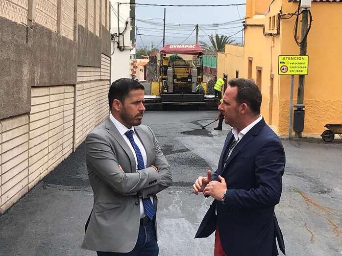 El alcalde, Héctor Suárez, y el concejal de Vías y Obras, Eloy Santana, comprobaron in situ este miércoles el buen ritmo de los trabajos que se están realizando en la calle Las Remudas, que une Alto de los Leones con la circunvalación y supone el arreglo de 5.140 metros cuadrados de pavimento, tal y como avanzó TELDEACTUALIDAD.