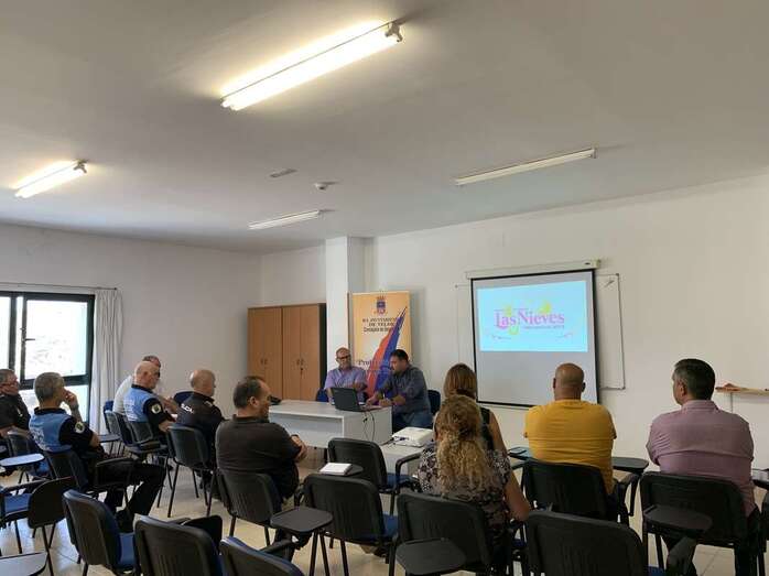 El concejal de Seguridad, Agustín Arencibia (Nueva Canarias), presidió este miércoles la reunión de la mesa de coordinación de los recursos que trabajarán para garantizar que la Traída del Agua transcurra con normalidad, un operativo en el que participarán la Policía Local, el Cuerpo Nacional de Policía, la agrupación de voluntarios de Protección Civil, servicios sanitarios y el propio patronato de fiestas El Manantial.