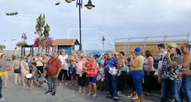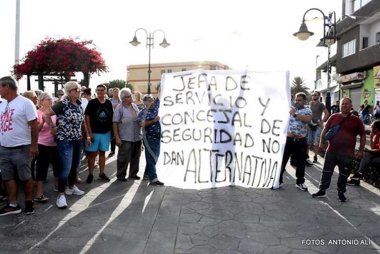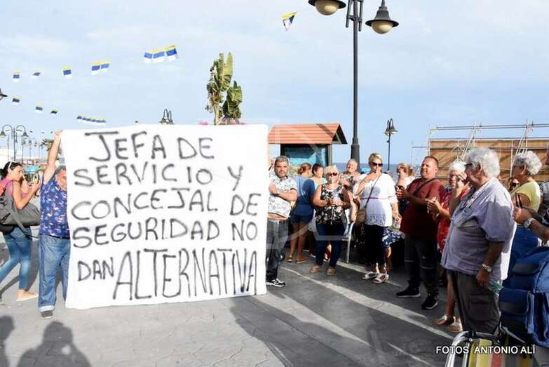 Esta tarde, un grupo de unos 50 vecinos y feriantes se concentraron en el paseo costero de la playa teldense para expresar su rechazo al desarrollo de las fiestas y patentizar su apoyo a los puesteros. Corearon durante unos minutos "las fiestas de Melenara, no nos moverán" y desplegaron varias pancartas acusando al Ayuntamiento de "no dar alternativa" para ubicar a los chiringuitos, una versión no compartida por fuentes municipales que precisaron desde hace más de 15 días plantearon a la comisión de fiestas y feriantes ubicar los puestos ambulantes en la zona del antiguo campo de fútbol, tal y como se hizo eco este periódico digital.