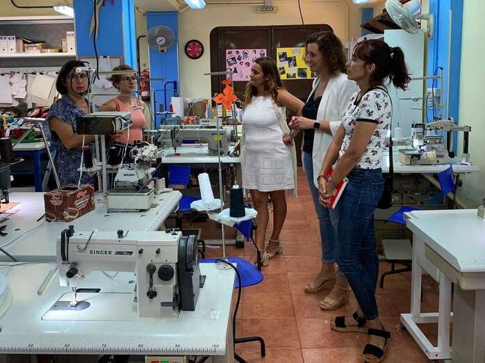 La consejera del Cabildo grancanario tuvo la oportunidad de conocer y departir con las mujeres que participan en el proyecto Ventana al empleo, subvencionado por su departamento y gracias al cual se lleva a cabo un taller de confección.