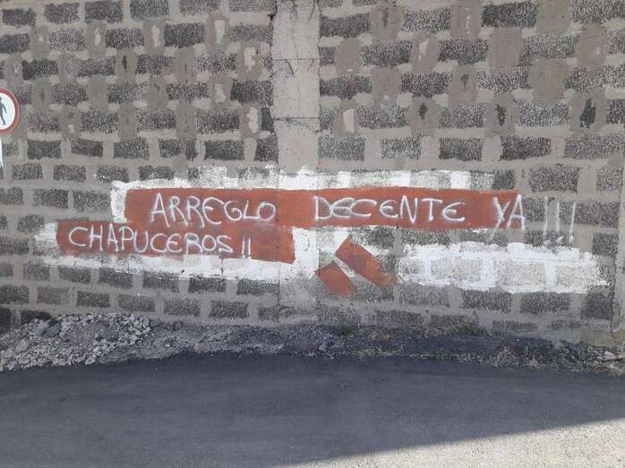 Aunque en Cruz de Jerez se llevó a cabo un arreglo, los socialistas se posicionan con los afectados y apoyan que se ejecute un arreglo en condiciones. Así, los residentes en la zona demandan un “arreglo decente” y tachan de “chapuceros” a los y las responsables, a través de una pintada en un muro, por el resultado “vergonzoso” de las obras, tal y como informó TELDEACTUALIDAD.