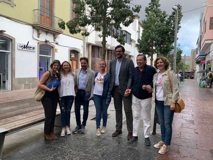Los candidatos al Congreso por Las Palmas Guillermo Mariscal y María Inmaculada Sáez, y al Senado por Gran Canaria, Sergio Ramos, estuvieron recorriendo la zona comercial abierta de Los Llanos acompañados por la presidenta local y concejala, Sonsoles Martín, y por la también edila María Eugenia Melián y la secretaria del grupo Popular en el Ayuntamiento de Telde, Carmen León Bueno.