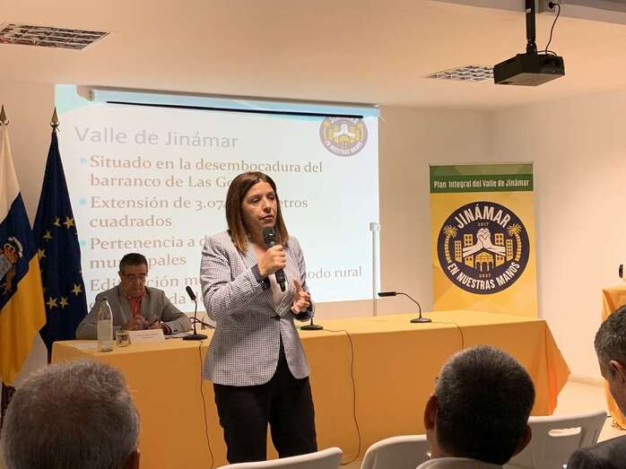 Carmen Hernández relató cuáles son los ámbitos de actuación que se desarrollan al amparo del Plan Integral del Valle de Jinámar, que van más allá de la propia rehabilitación del parque de vivienda y sus entornos (en 2020 serán 1.700 las viviendas remozadas), actuando sobre el desarrollo y fortalecimiento socioeconómico y del medioambiente, y la mejora de las condiciones sociales, educativas y culturales del barrio. El gran próximo reto a lograr, sentenció, es “crear un sistema de gestión específica de los niveles de coordinación pública y la participación ciudadana, ya que es vital que las instituciones vayan de la mano de la sociedad civil; es la fórmula del éxito”.