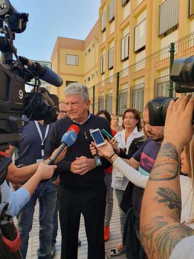 En el colegio electoral ubicado en las instalaciones del antiguo colegio público de Clavellinas han tenido que sacar las urnas al patio para que las personas con movilidad reducida puedan ejercer su derecho al voto debido al presencia de un escalón en la entrada que hace de barrera arquitectónicas para las sillas de rueda.