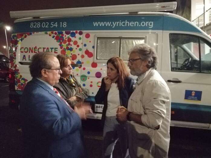 Parreño ha visitado el Centro de la Infancia, el Banco de Ropa, el pabellón Juan Carlos Hernández, los trabajos de rehabilitación de viviendas ejecutados y los que actualmente se acometen en las 650 casas en la segunda fase, y a la Fundación Canaria Yrichen que mostró la unidad móvil Conéctate a la Vida.