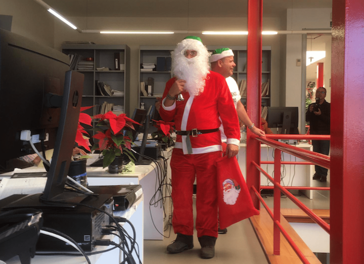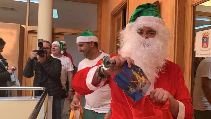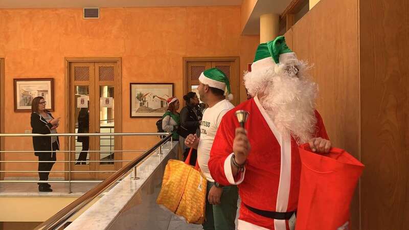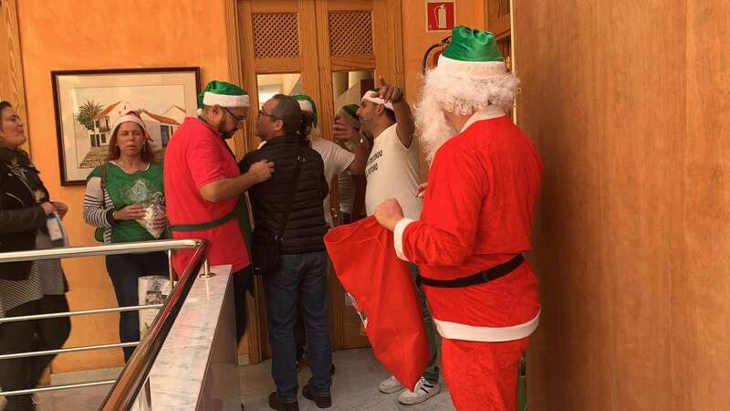 Telde.- Mañana festiva y muy navideña la de este jueves en el Ayuntamiento de Telde gracias al sindicato CSIF, que llevó a su particular Papa Noel por las distintas sedes municipales en un animado recorrido el que no faltaron los villancicos y los aguinaldos que repartieron a todos los trabajadores de la Institución.