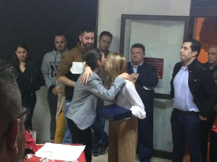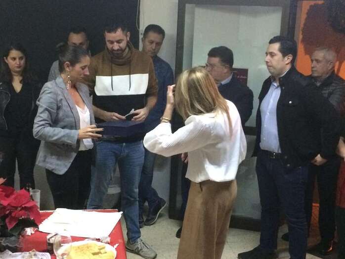 El homenaje tuvo lugar en la sede socialista durante el tradicional brindis navideño, que se celebró de forma sencilla e íntima por el luto que aún guarda la familia socialista de Telde por el óbito de Pérez.
