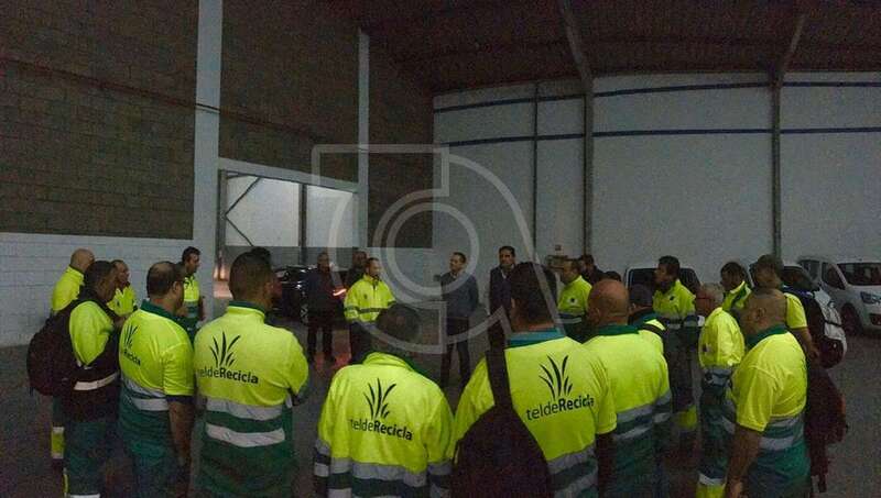 El concejal titular del área de Servicios Municipales, Eloy Santana, se acercó a las 2.00 horas a la nave del Parque Empresarial de Melenara (Las Rubiesas) donde la nueva concesionaria ha fijado su centro logístico para saludar al personal y agradecerle especialmente al comité de empresa su apoyo para que el cambio de adjudicataria fuera “lo menos traumático posible”.