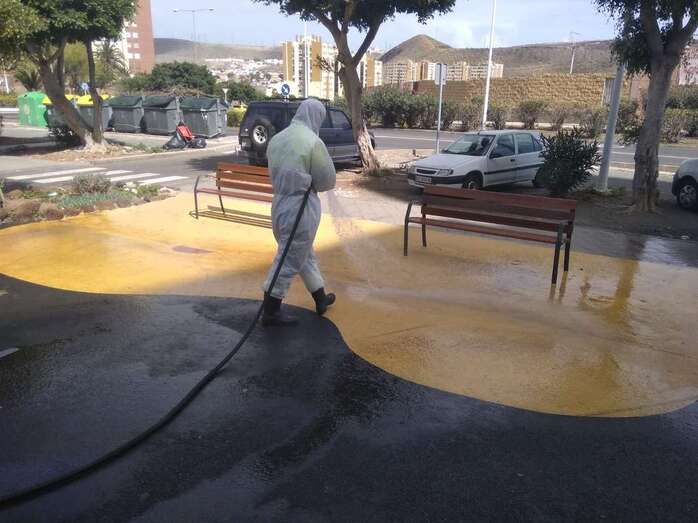 Telde.- El Ayuntamiento de Telde continúa reforzando y ampliando las zonas que son objeto de acciones intensivas de limpieza y desinfección como prevención ante la emergencia sanitaria por el coronavirus.