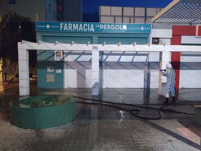 Se están aplicando tratamientos desinfectantes de larga duración en lugares como los centros de salud, farmacias, supermercados, el Mercado Municipal y las dependencias en las que se están prestando servicios sociales.