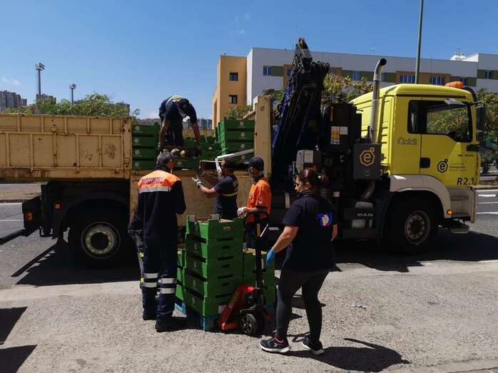 En coordinación con el área de Servicios Sociales, Protección Civil procedió a distribuir esta fruta en las dependencias de la ONG Guaxaira Aguax de Jinámar y en el albergue provisional para personas sin hogar habilitado en el pabellón Juan Carlos Hernández.