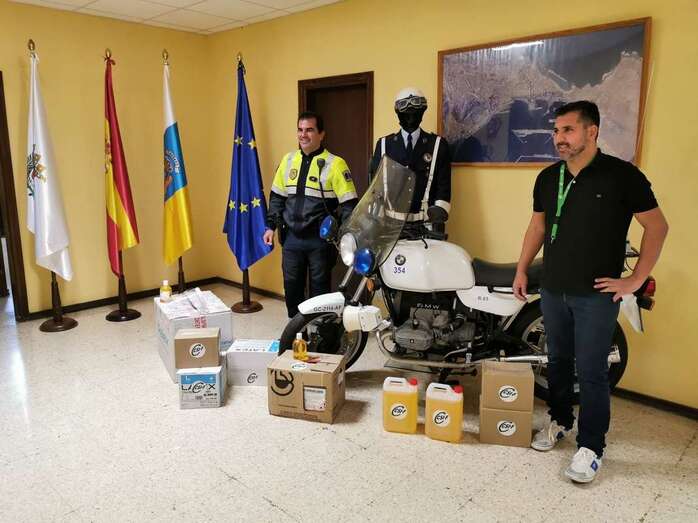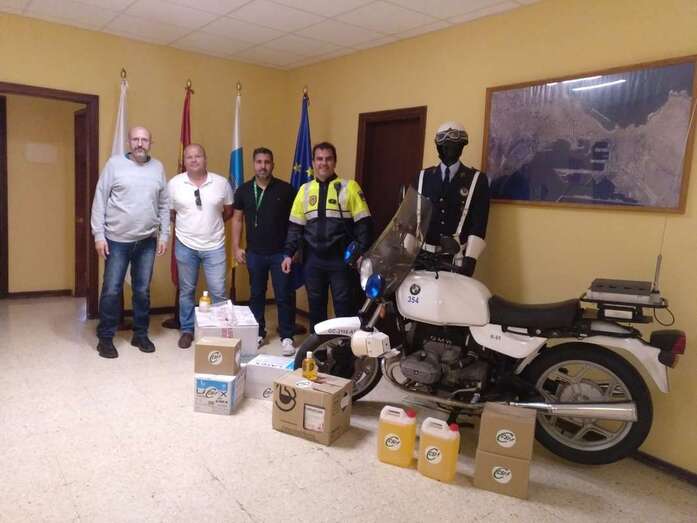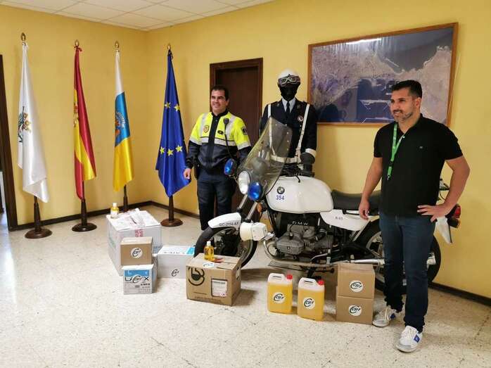 A la policía Local de Telde 700 guantes, 10 litros de gel desinfectante y 30 pantallas de protección.