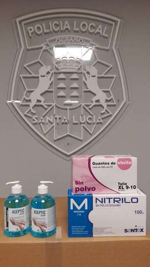 A la Policía Nacional de Telde 30 pantallas de protección guantes y gel.