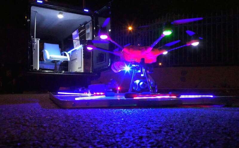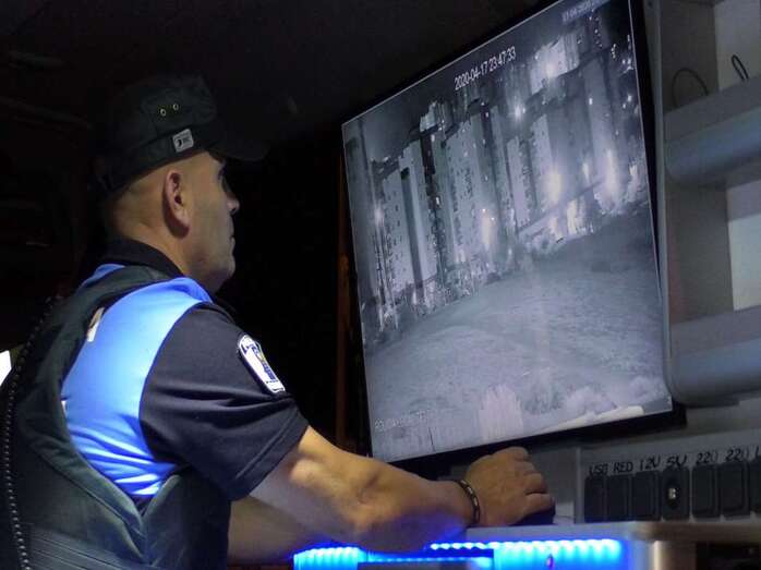 Las imágenes de los drones llegan al puesto de mando avanzado, un furgón equipado con una pantalla y soporte técnico que graba automáticamente todo lo que reciben.