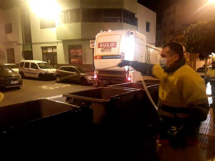 Telde.- El Ayuntamiento de Telde continúa manteniendo el ritmo de las labores de limpieza y desinfección paulatina de los barrios con la duplicación de los servicios de baldeo y limpieza con hidrocomprensor, en dos turnos seguidos que comienzan a las 24.00 horas y terminan a las 12.00 horas.