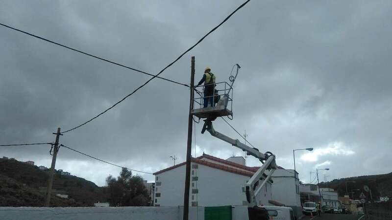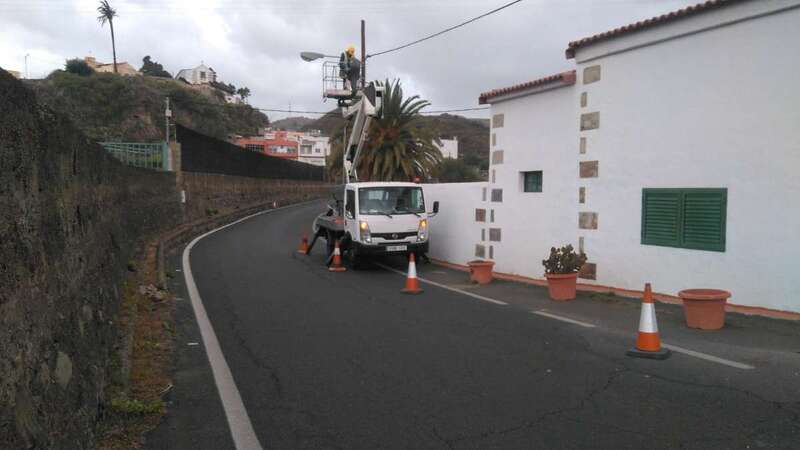 Telde.- El área municipal de Alumbrado Público llevó a cabo ese viernes obras de reposición de postes en mal estado y luminarias fundidas y el arreglo de trenzados que presentaban problemas de caída en la calle de General Castaño, la carretera general que atraviesa el Valle de los Nueve.