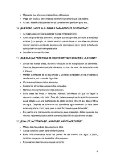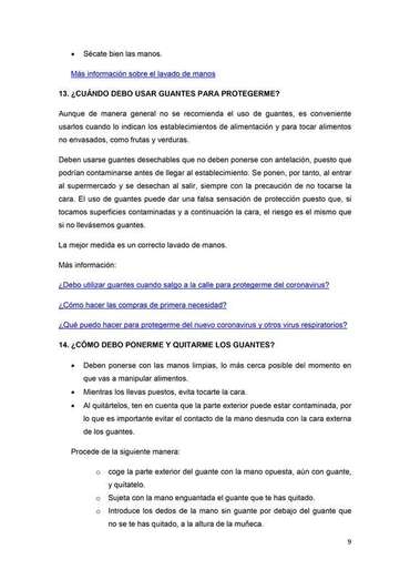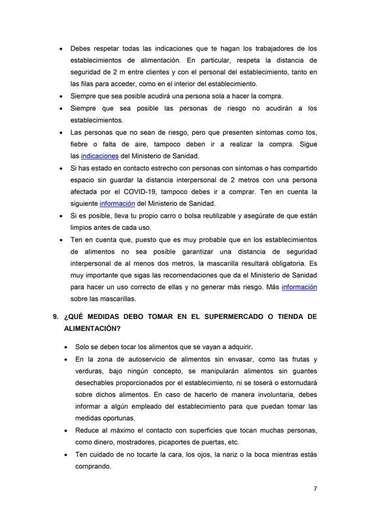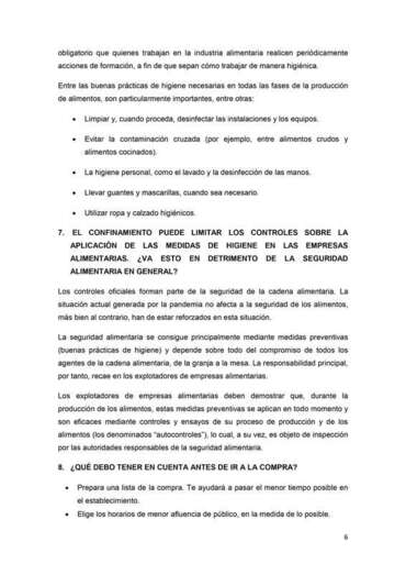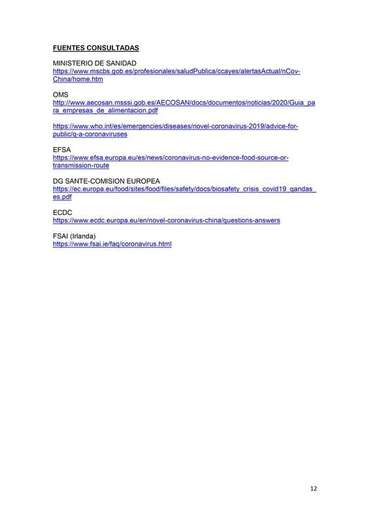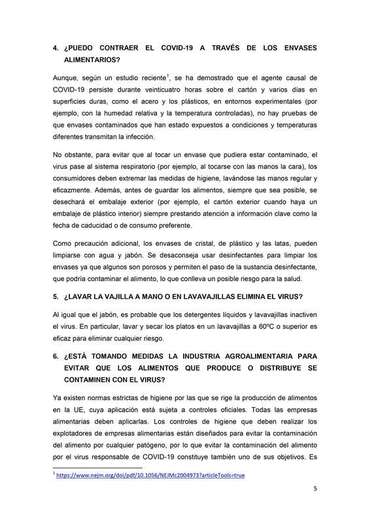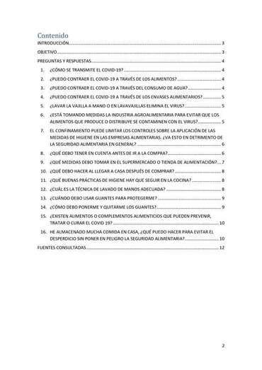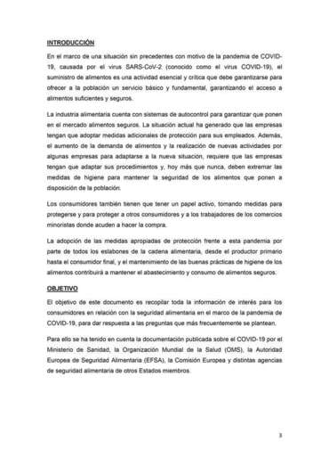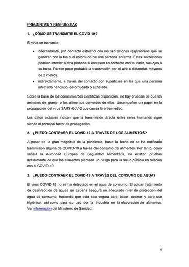 El texto recoge cuestiones como las formas de transmisión del virus, qué medidas de control se están adoptando en la industria agroalimentaria, o cuáles son las precauciones que se deben tomar tanto en el hogar o fuera del mismo, entre otras.