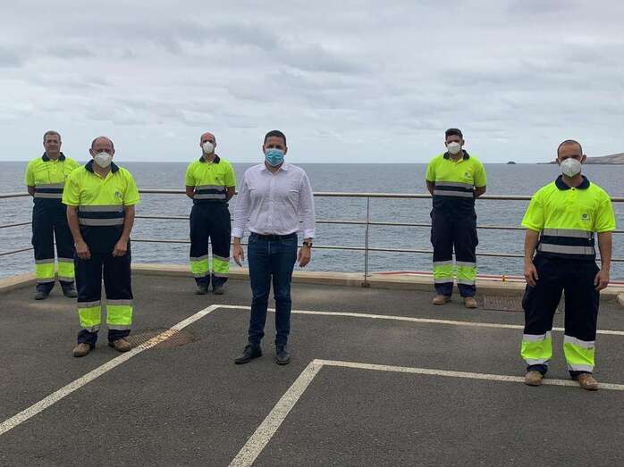 Héctor Suárez explicó que los operarios de la desaladora Yeray Alemán, Samuel Martel, Juan Antonio Delgado, Yauci Castillo y Juan Guedes han permanecido aislados y confinados por turnos semanales dentro de la propia planta, sin tener contacto con ninguna otra persona para evitar riesgos de contagio, a la vez que han realizado las tareas o labores de mantenimiento necesarias para abastecer de agua tanto al municipio de Telde como al aeropuerto de Gando.