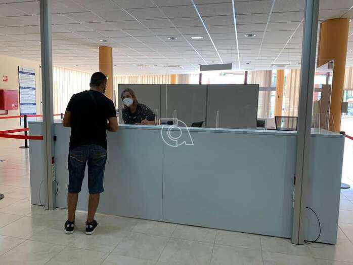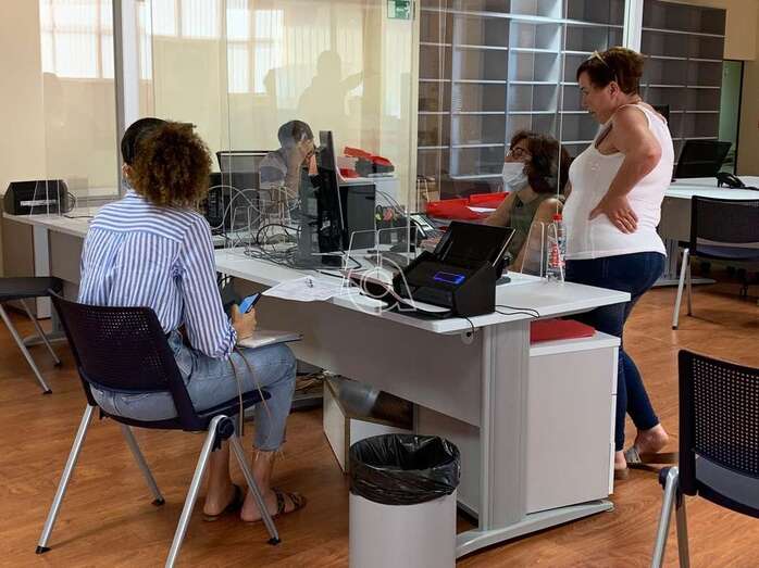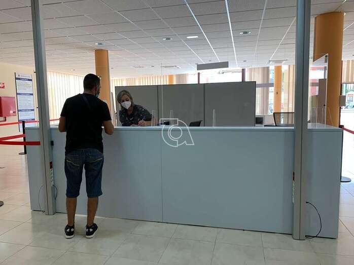 De momento, en esta jornada se empezó únicamente con la atención al público. Solo dos salas de la primera planta, repletas de mamparas y dispensadores de gel hidroalcohólico, estaban habilitadas para los vecinos que fueron acudiendo por la mañana con cita previa.