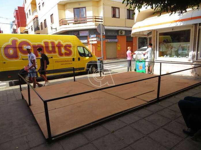 Telde.- La Concejalía de Urbanismo ha incoado un expediente de disciplina urbanística al titular del negocio (una zumería) que han instalado sin permiso una tarima de madera a modo de terraza sobre dominio público en la calle de Alonso Quesada, esquina Saulo Torón, junto al paseo peatonal que discurre por delante de la fachada del Centro de Mayores de Telde.