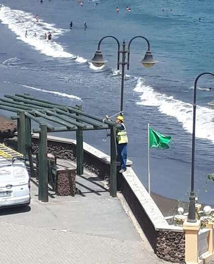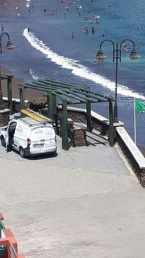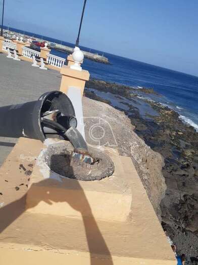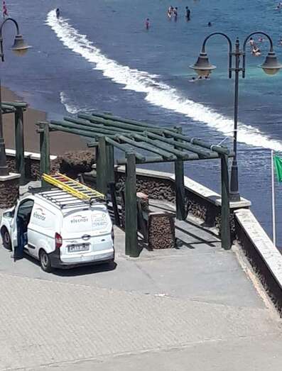 El grupo de izquierdas se hace eco de situaciones denunciadas en los últimos tiempos por TELDEACTUALIDAD sobre el desplome de luminarias en Taliarte y los parches para evitar su caída, como ocurrió recientemente en Clavellinas, donde un operario de Elecnor amarró una farola que amenaza con caerse al entramado de madera de un mirador.