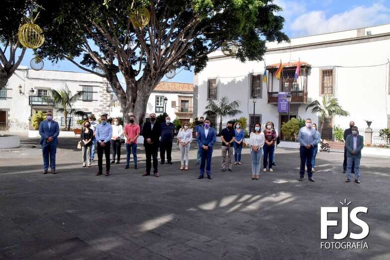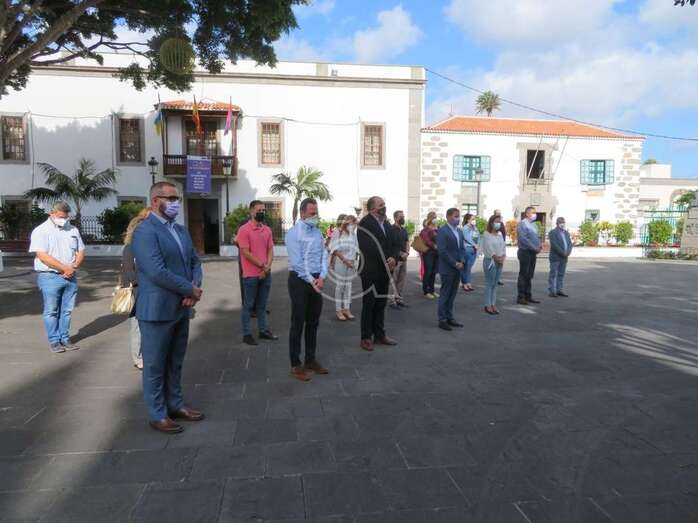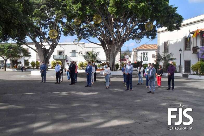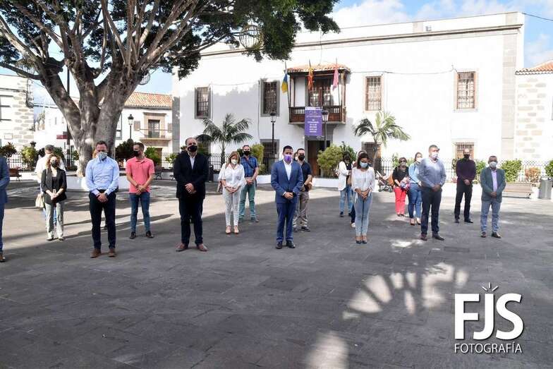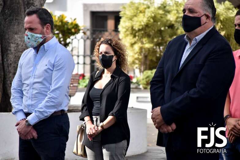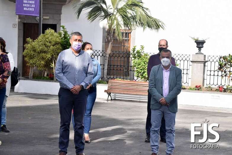 La comitiva, encabezada por el alcalde Héctor Suárez, guardo un minuto de silencio en señal de respeto por las víctimas y para visibilizar su repulsa a la violencia de género.