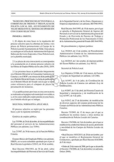 Telde.- El Boletín Oficial de la Provincia publicó este jueves, 25 de diciembre, las bases del proceso selectivo para cubrir 33 nuevas plazas de la Policía Local en el Ayuntamiento de Telde, a través del sistema de oposición.