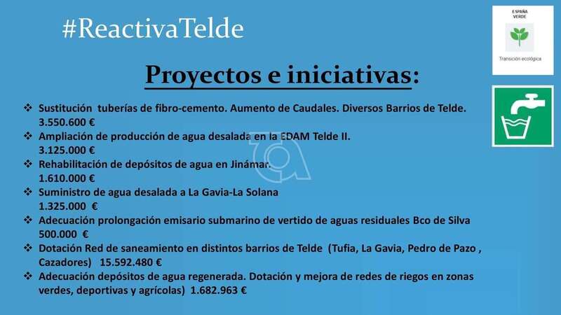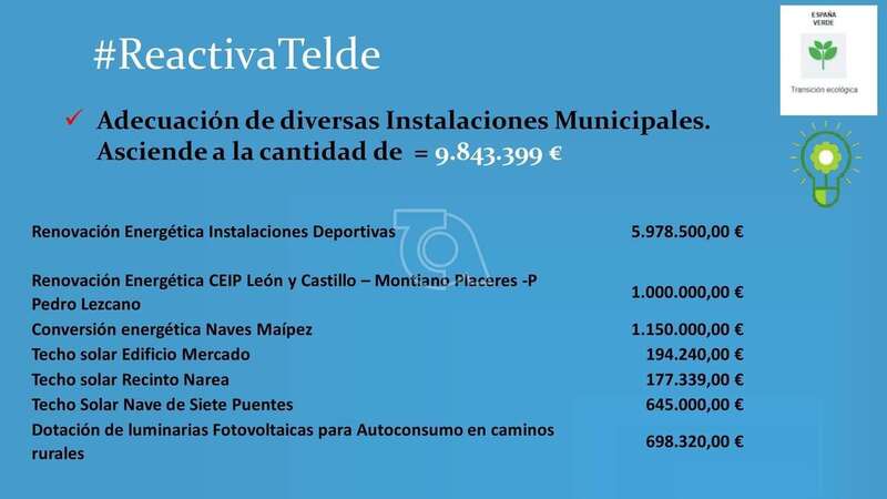 Telde ha elaborado un total de 125 iniciativas para un futuro sostenible bajo el lema Reactiva Telde, presupuestadas en 172 millones de euros, para captar financiación de estos fondos europeos . "Telde tiene ahora una oportunidad única para diversificar la economía, generar empleos y construir un nuevo modelo de ciudad", según indicó el alcalde Héctor Suárez.