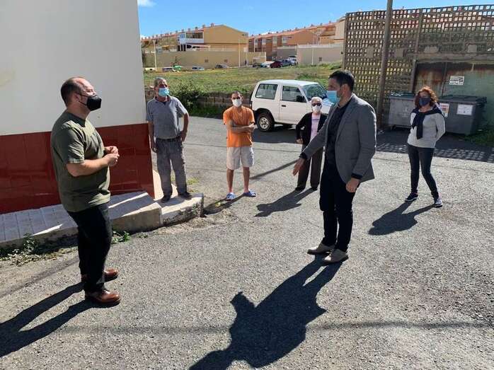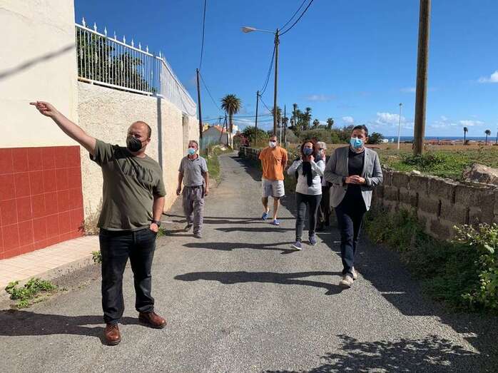 Durante la visita, en la que también estuvo el gerente de Aguas de Telde, Luis Rúa, y una representación vecinal de la zona afectada, Suárez pudo comprobar, entre otros asuntos, la desconexión de la red de saneamiento que padece este grupo de casas.
