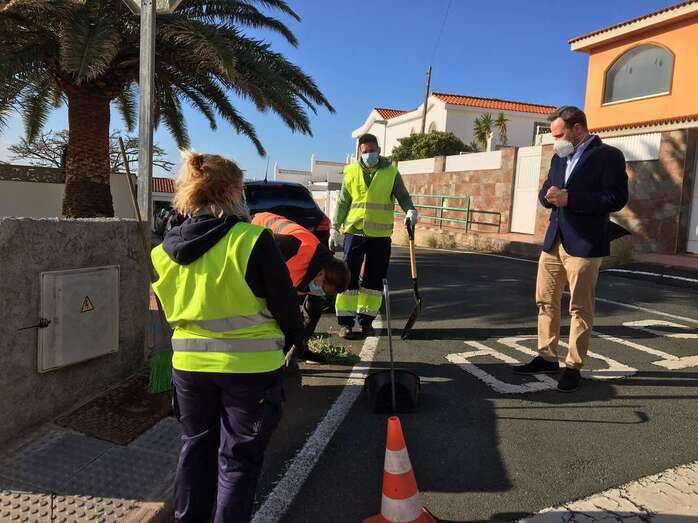 El edil del área, Eloy Santana (Nueva Canarias), explica que siete trabajadores (un capataz y seis operarios) están realizando en esta zona del municipio labores de deshierbe de aceras y calzadas, retirada de sedimentos y restos vegetales, y la limpieza del entorno de las zonas de contenerización.