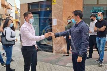 Héctor Suárez, actual alcalde de Telde, saluda militantes a su llegada este sábado a la sede electoral de CC/TA. Héctor Suárez, actual alcalde de Telde, saluda militantes a su llegada este sábado a la sede electoral de CC/TA.