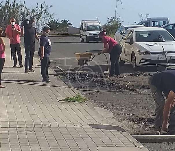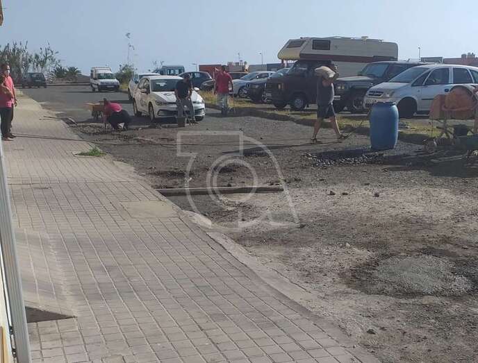 Telde.- Los vecinos del barrio teldense de Lomo Bristol, en Telde, llevan años denunciando el mal estado de sus carreteras y han decidido ponerle solución ellos mismos. Han reunido casi 200 euros, comprado el material necesario para parchear la calle y este sábado comenzaron los trabajos.