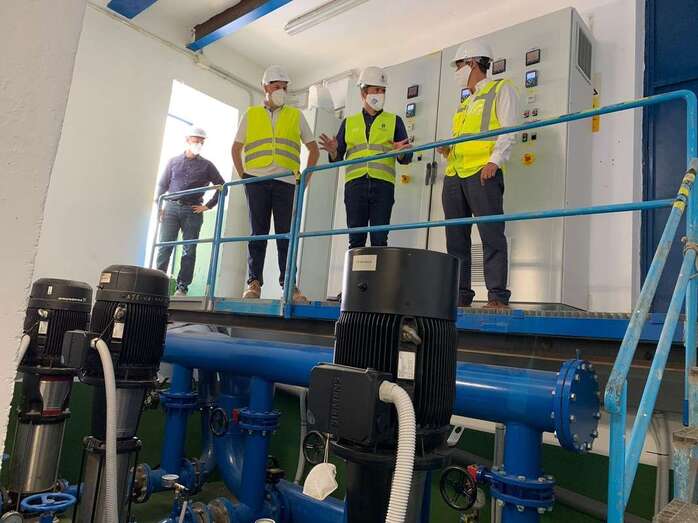 alcalde Telde y concejal de Aguas y Saneamiento, Héctor Suárez, visitó estos días la nueva estación de bombeo de agua desalada que la empresa mixta Aguas de Telde ha renovado recientemente. Está ubicada en la planta de San José de las Longueras y su reforma se acomete debido a que los equipos de bombeo anteriores estaban obsoletos.