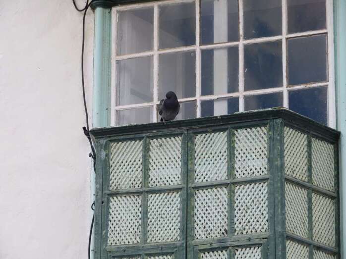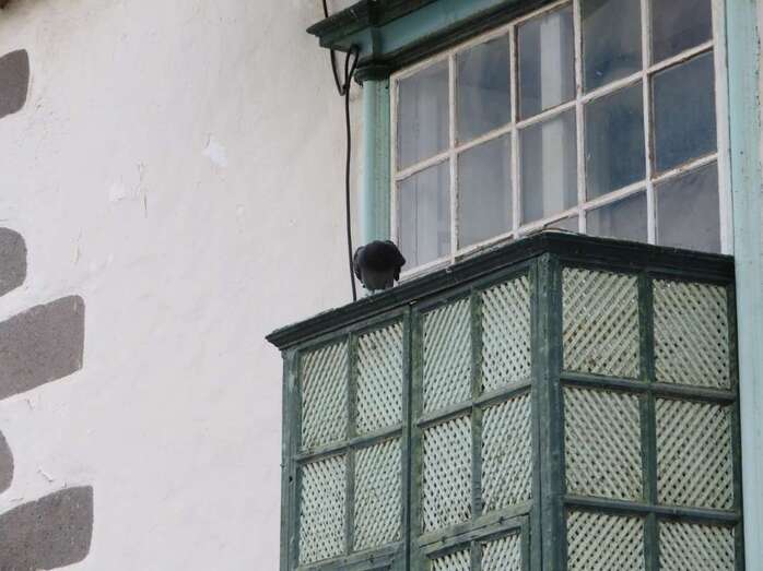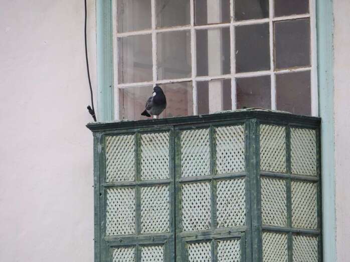 Ahora bien, hoy me voy a referir al estado de ruina que sufre la preciosa casona de León y Joven de la plaza de San Juan. Las palomas han invadido hasta sus singulares balcones y se ven salir sus crías revoloteado por sus viejas maderas deteriorándose aún más con sus nocivos excrementos. Otro tanto ocurre con su precioso patio, verdadero palomar y sus techos totalmente en ruina como si tal cosa.