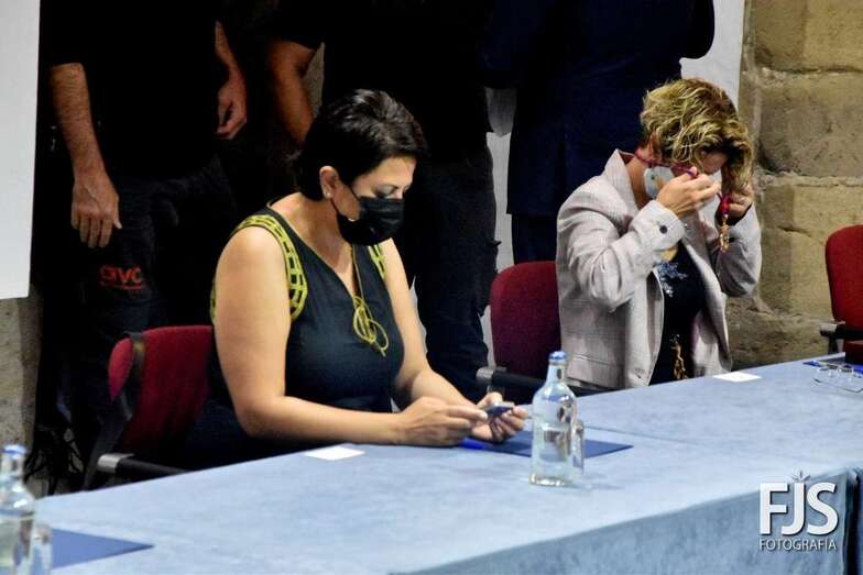 De manos de Celeste López y tras prometer el cargo, Carmen Hernández se impuso la medalla de la Corporación y recibió el bastón de mando de la ciudad entre aplausos de los presentes y una traca de voladores lanzada desde el exterior, iniciando así su segunda etapa al frente del Ayuntamiento de Telde (2015-2019 y 2021-2023). Una responsabilidad que, como hasta ahora, compaginará con la de diputada en el Parlamento de Canarias.