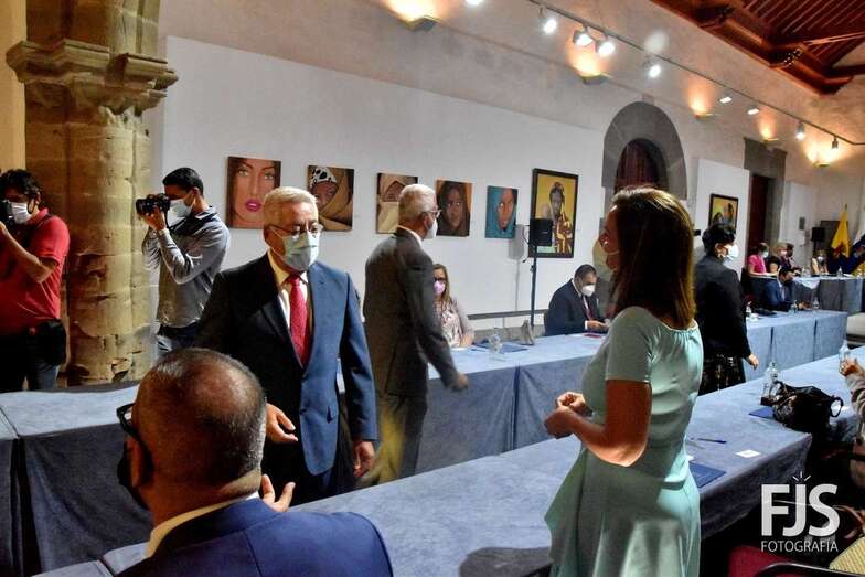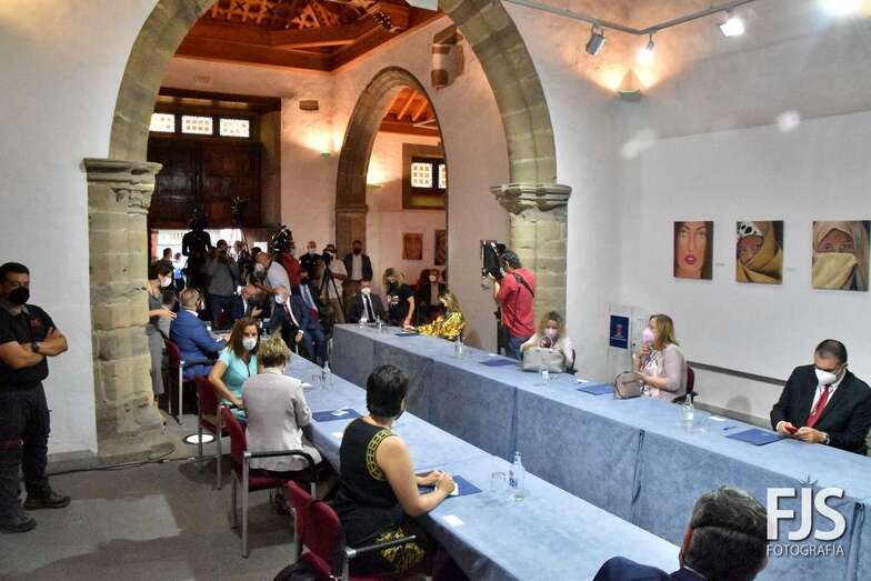 El Pleno de Telde se reunió este martes en una sesión extraordinaria y de carácter solemne que se desarrolló en la ermita de San Pedro Mártir, con un aforo muy limitado por la situación sanitaria, y que pudo seguirse desde las Casas Consistoriales a través de unos televisores y también en las redes sociales de la Institución municipal.