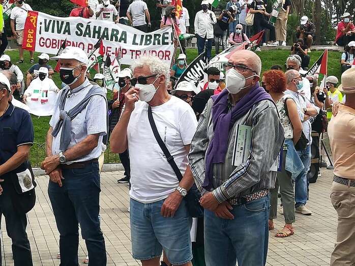 Entre los asistentes en Santa Cruz de Tenerife en apoyo al pueblo saharaui se encontraba el diputado regional de Sí se Puede Canarias, Francisco Déniz, y la consejera del Cabildo tinerfeño de esta formación política María José Belda.