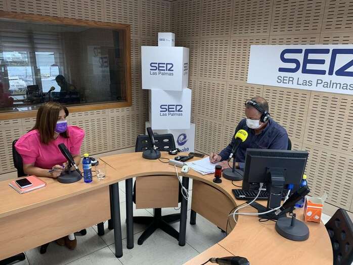 La primera mandataria acudió a los estudios de SER Las Palmas para ser entrevistada en directo por el periodista Evaristo Quintana en el programa estrella de esta emisora Hoy por Hoy-El Drago.