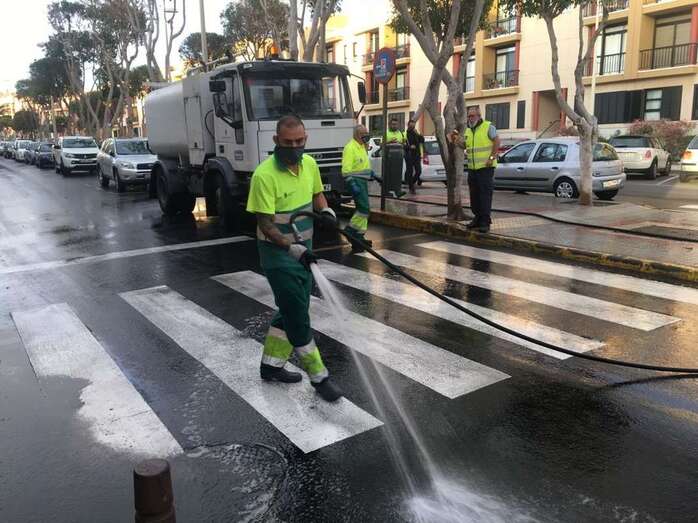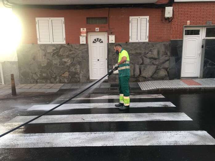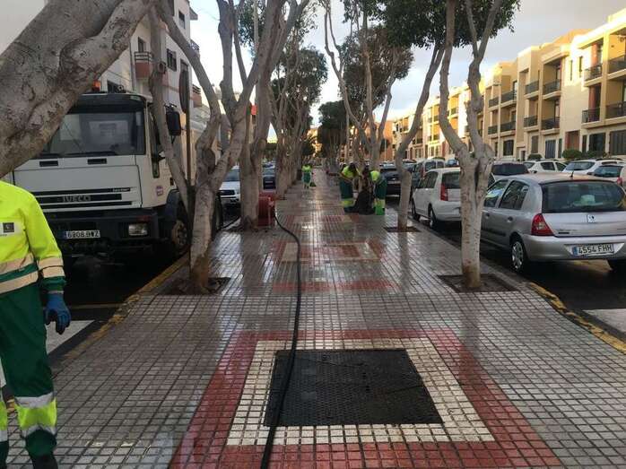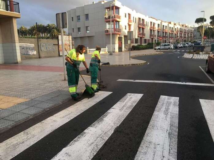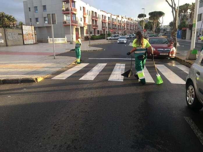 El edil del área, Eloy Santana, explica que esta limpieza –en la que se ha utilizado baldeadoras y mangueras a presión– se ha realizado tras los trabajos de poda y mantenimiento de la arboleda y las zonas verdes que ha llevado a cabo la Concejalía de Parques y Jardines que coordina Álvaro Monzón, mejorando así el estado de estas vías.