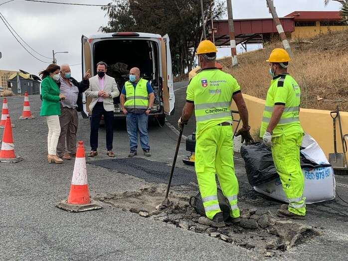 La alcaldesa, Carmen Hernández, y el concejal de Vías y Obras, Eloy Santana, visitaron este martes este barrio teldense para comprobar los trabajos de rebacheo que se están ejecutando y conocer las inquietudes vecinales.