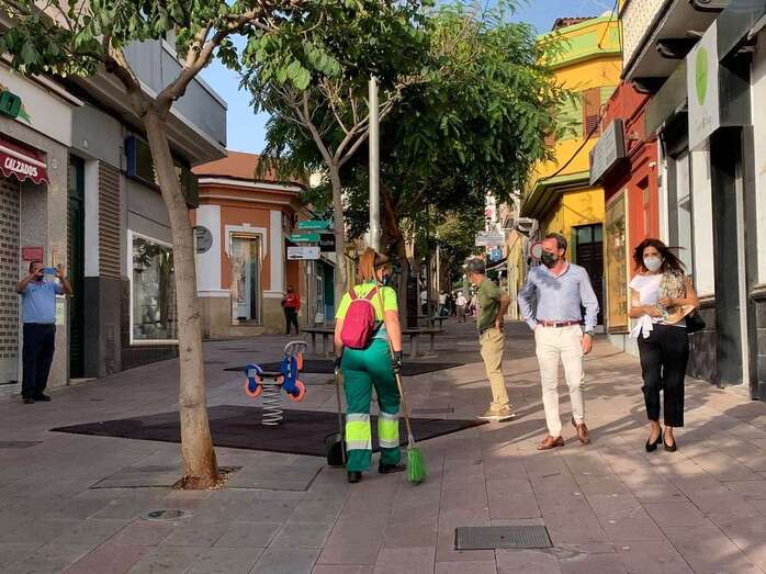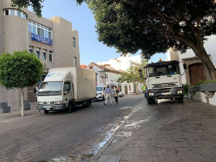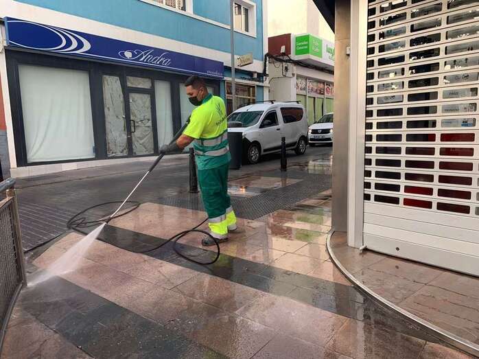 Telde.- El Ayuntamiento de Telde realizó este viernes una limpieza de choque en la Zona Comercial Abierta de Los Llanos, una actuación que se llevará a cabo en los distintos barrios del municipio de forma paulatina.