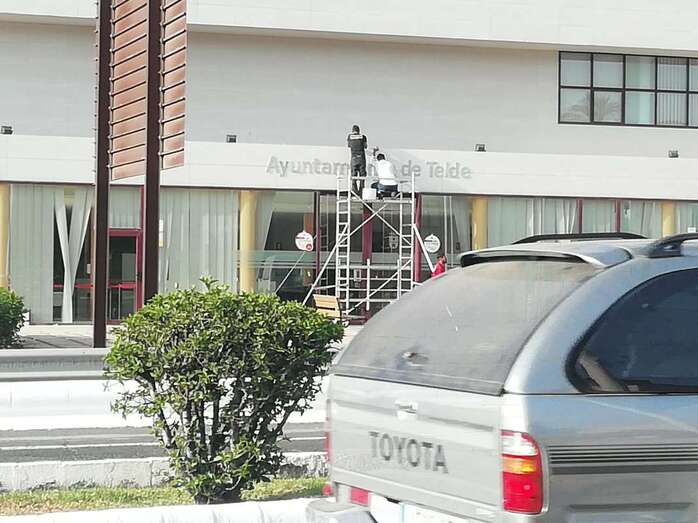 Casi un año después de su apertura al público, el nuevo edificio administrativo de El Cubillo, que concentra un buen número de departamentos y concejalías, ya tiene rotulo identificativo en su fachada principal de que se trata de la flamante sede del Ayuntamiento de Telde. Los trabajos para tal fin comenzaron este lunes.