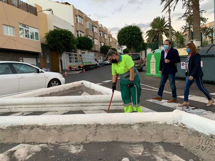 La alcaldesa, Carmen Hernández, acudió junto al edil a este barrio para comprobar las labores previstas dentro de este dispositivo especial que, además de la limpieza incluye el cambio de contenedores en aquellas zonas que lo requerían.