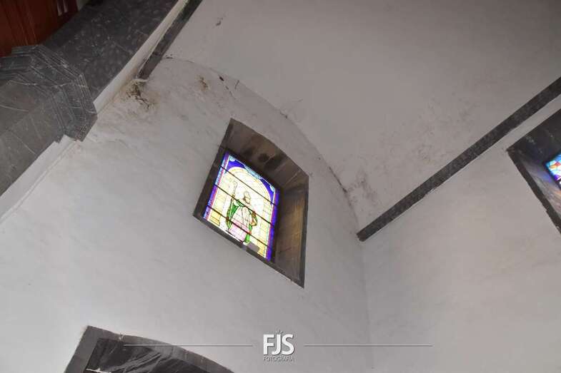 La sacristana, que conoce al dedillo el estado de la construcción religiosa, pues lleva asumiendo esta responsabilidad casi 22 años, llamó la atención sobre el deterioro que presentan las cornisas de los cuatro retablos de las naves laterales, a los que hay que renovar la madera, y la necesidad de cerrar por su parte superior el retablo del Calvario.