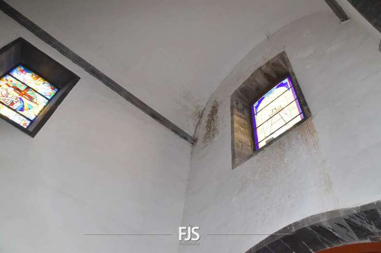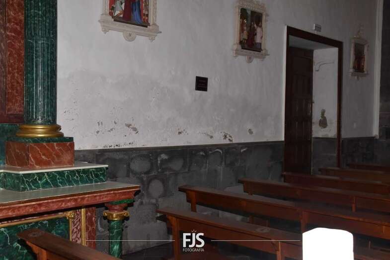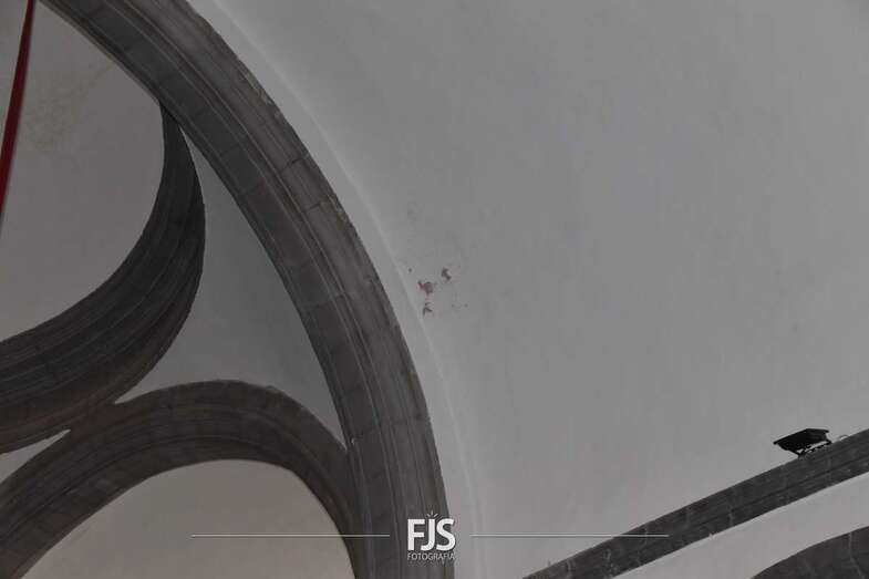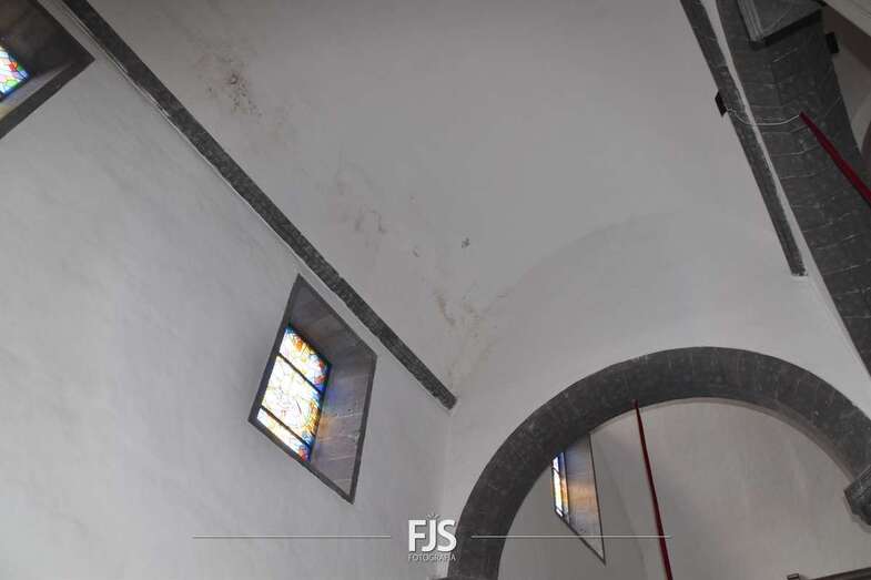 Tras la visita de los cargos institucionales, Calzada detalló a TELDEACTUALIDAD que los problemas de humedades afectan tanto a la cubierta interior como a los paramentos laterales del templo, donde se han generado ya desprendimientos de trozos del revestimiento de la fachada que da al sur. Son visibles también en la cúpula.
