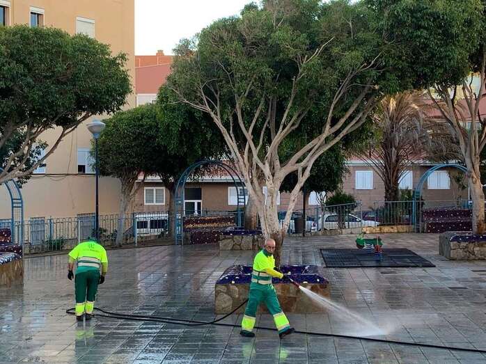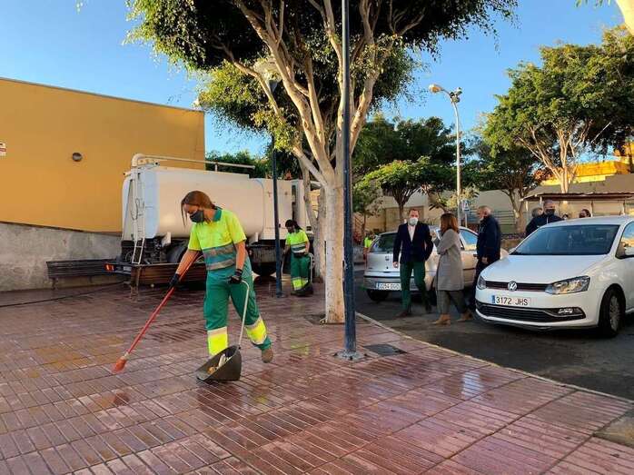 La alcaldesa Carmen Hernández y el concejal de Limpieza, Eloy Santana, que acudieron a este barrio durante el desarrollo de las tareas, recuerdan que con estas actuaciones "no solo se mejora estado de los espacios públicos sino que se optimizan las labores de los servicios ordinarios de limpieza".
