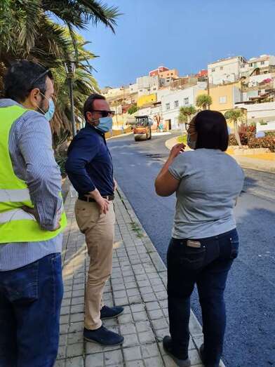 El concejal de Vías y Obras, Eloy Santana, se acercó a este lugar de la ciudad para comprobar junto a representantes de la asociación vecinal y algunos residentes, con quienes se había comprometido a ejecutar estos trabajos, que cuentan con una subvención del Cabildo de Gran Canaria.