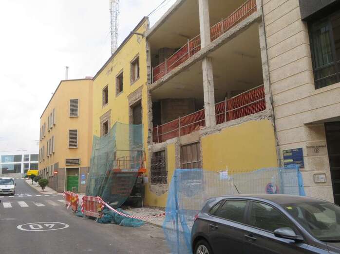 Las esperadas obras de reforma y rehabilitación del edificio de los antiguos Juzgados de Telde y futura sede de la Oficina de Empleo en la ciudad ya están en marcha. Los trabajos, adjudicados a una UTE por 1,3 millones de euros y con un plazo de ejecución de ocho meses, comenzaron recientemente con la demolición parcial de la fachada de este inmueble ubicado en el barrio de San Juan, en la confluencia entre las calles Pedro Hernández Benítez y Luis Doreste Silva.