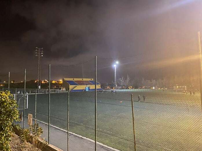 El campo municipal de fútbol de Las Huesas sigue teniendo problemas con la iluminación y los equipos que allí entrenan lo hacen casi en la oscuridad.