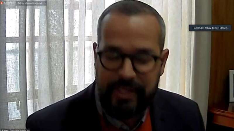 Los jóvenes comunicadores de Telde, Ezequiel López (júnior) y Virginia Brito, presentadores del programa El mostrador de Ezequiel López (Canal 4 TV), leyeron este jueves el manifiesto institucional contra la violencia de género en el Pleno ordinario telemático correspondiente al mes de febrero.